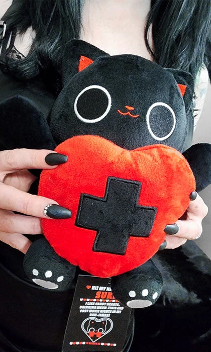 Introducing the sweetest little kitty plushie, perfect for squishing, displaying or snuggling up with during a spooky date night. Beserk Plushies are super soft, structured and come in a personalised black storage bag.