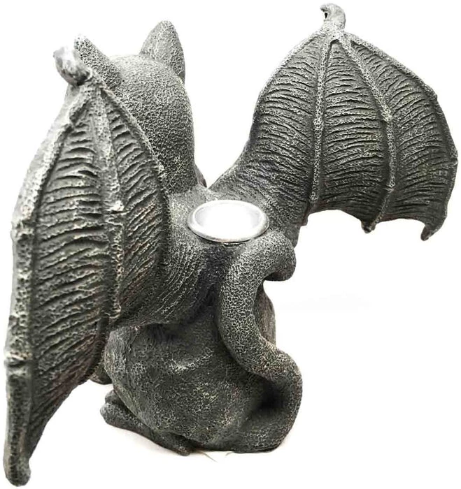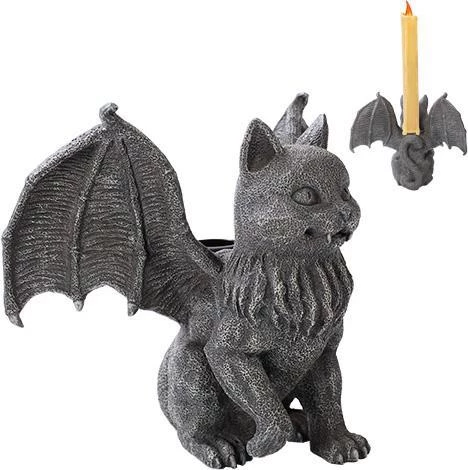 Most cats simply scamper off into the night, but this winged feline has other plans! The perfect addition to your Halloween or Gothic dΓ©cor, this Vampire Cat Gargoyle Candle Holder will add a dark glow over any room in your home. Crafted from cold cast resin, this candle holder is painted by hand and features a stone greyΒ colour.