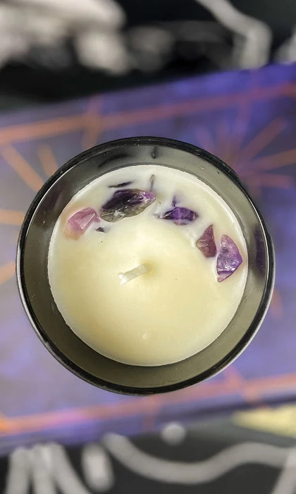 Create a relaxing space with the Esoteric Manifestation Palo Santo & Lavender Candle. Palo Santo and lavender has been used for years in aromatherapy to balance, promote relaxation and ground. It is a wonderful addition to any household or altar.