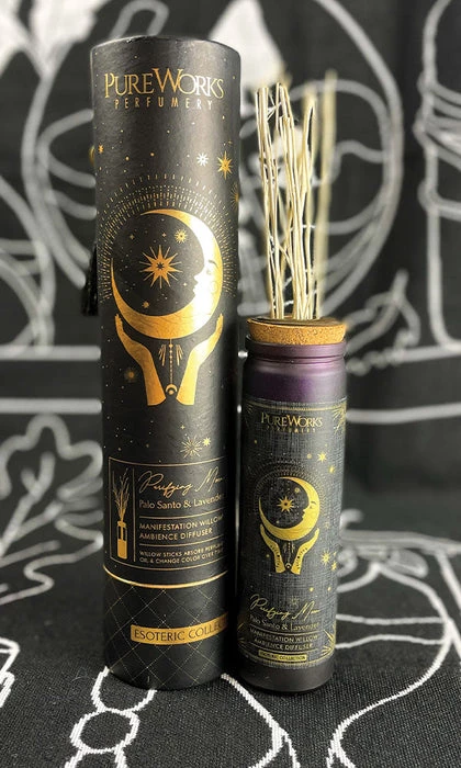 Create a relaxing space with the Esoteric Manifestation Palo Santo & Lavender Reed Diffuser. Palo Santo and lavender has been used for years in aromatherapy to balance, promote relaxation and ground. It is a wonderful addition to any household or altar.