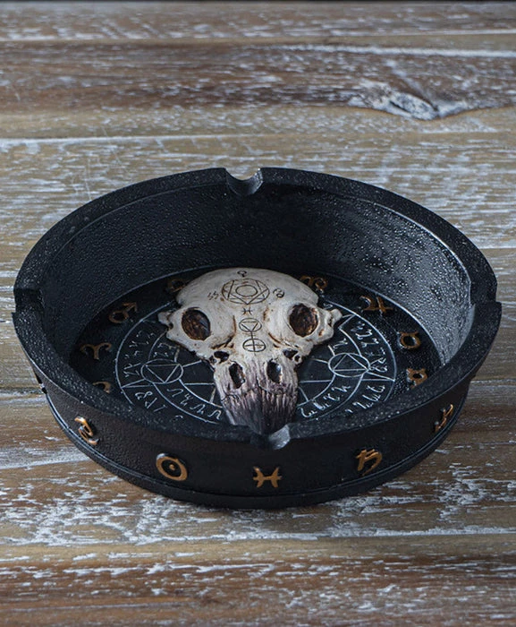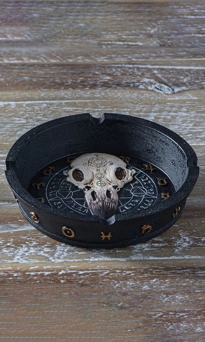 Need a super cute ashtray or even a jewellery tray for all the super cute goth rings you may have?! Well this Mystic arts tray features a raven skull and alchemical symbols on the edges!ย
