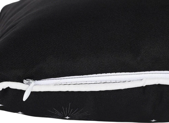 Get Gothic with your home wares. This gorgeous rectangular cushion features aย grey triple moon design and white tassel accessory on each corner. Zip closure so inner can be removed.