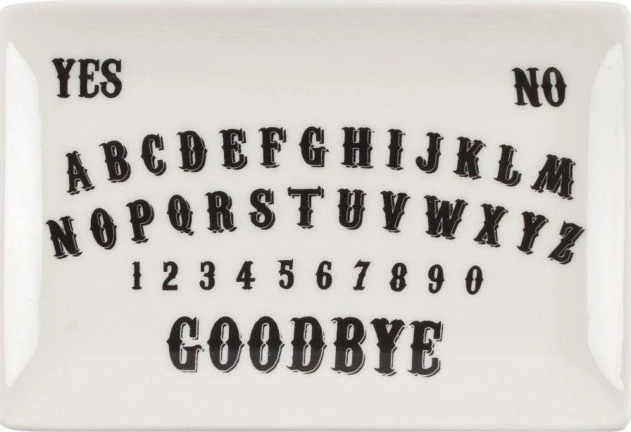 This magical white ceramic dish features a contrast black spirit board inspired print with a matching black outline. Perfect for keeping yourΒ talismans and protection crystalsΒ safe in one spot or just as a decoration, this dish is a must-have for any witch!