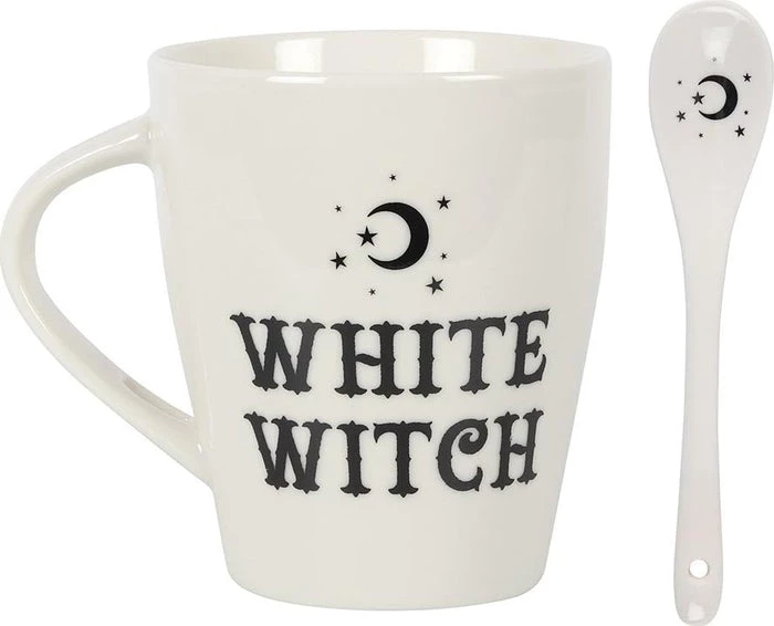 This bewitching mug and spoon set will add a pinch of magic to every cuppa. Style features ‘White Witch’ text and matching teaspoon with a mystical moon and star design that fits perfectly in a slotted handle.