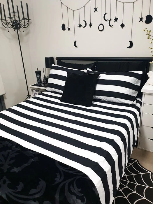 Theย Showtime Creepsย Quilt Setย bringsย spookyย andย macabreย vibes to the bedroom.ย Featuringย an all over Beetlejuice inspiredย designย – perfect for anybody who likes to doze on the deadly side!ย