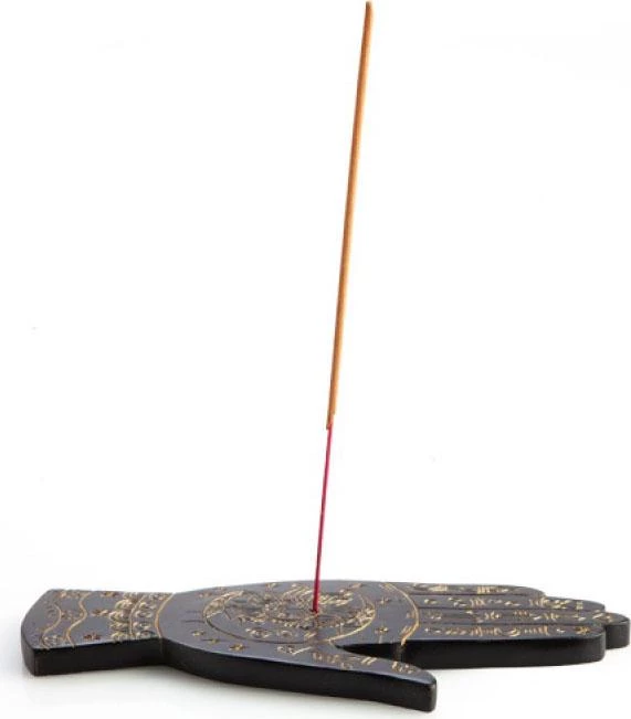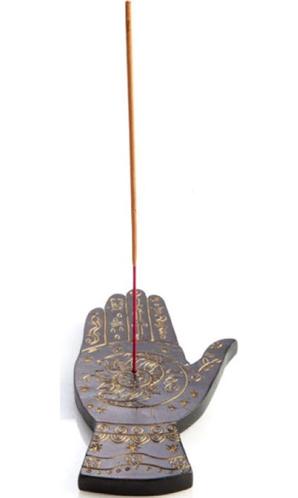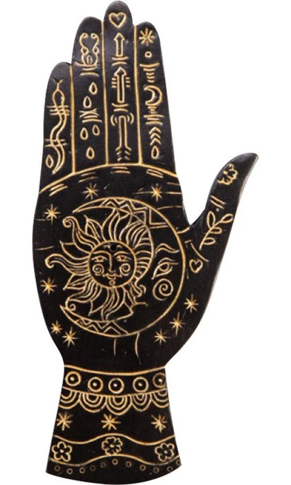This black hand-shaped incense burner with gold carved palmistry details is the perfect addition to any Gothic home. Features a small hole in the pupil of the eye to hold your incense sticks.