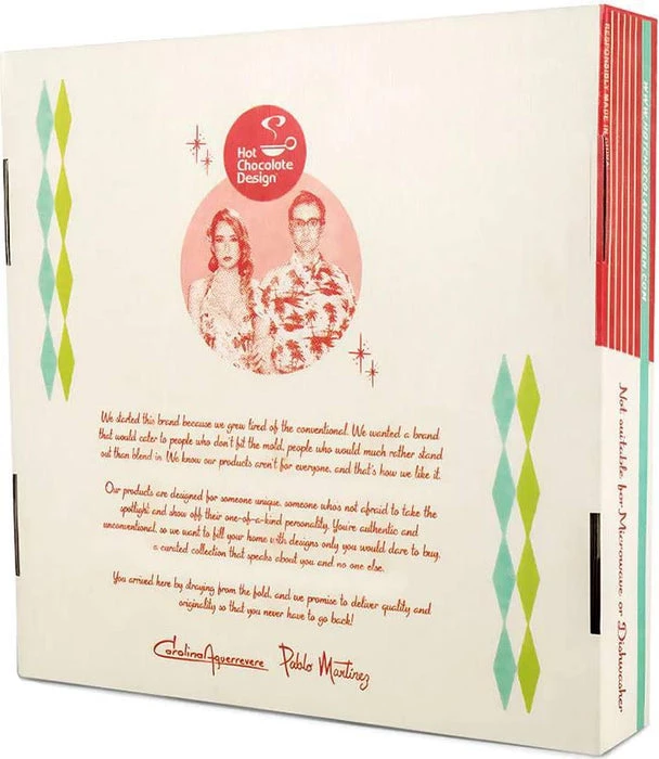 Host your next dinner party with these printed, glorious, fun, famous Hot Chocolate designed plates! We know you love your shoes, now you can enjoy those vibrant, high contrast patterns and prints every day. Great gifts, great home decor and great options to serve your brekkie, lunch, dinner or snacks! Hot Chocolate living has arrived!