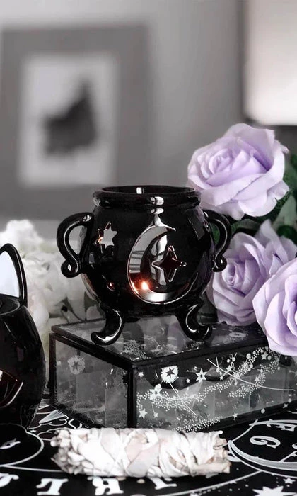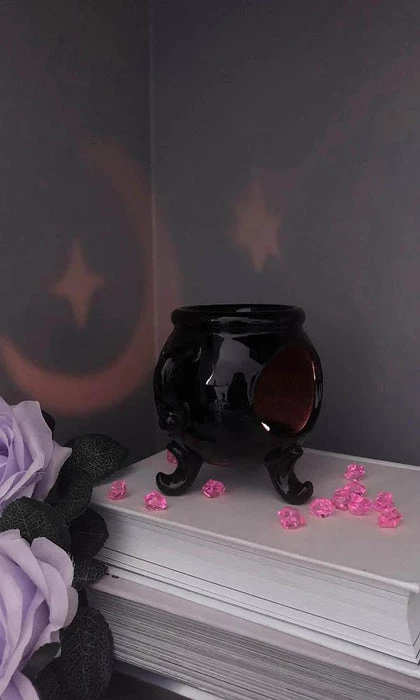Add the finishing touches to your crypt, altar or office with this cute ´Cauldron’ oil burner. In black with cut-outs, just use your favourite burning oil.