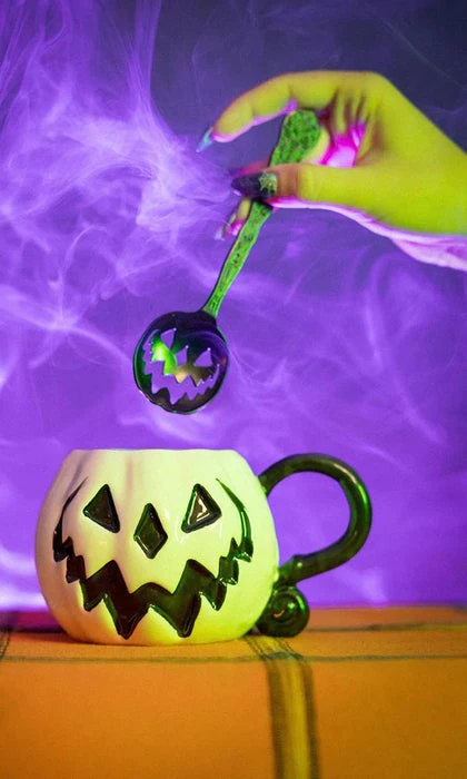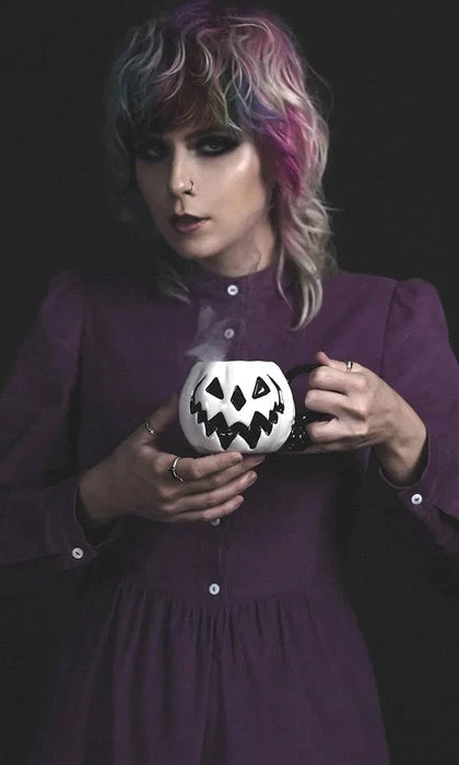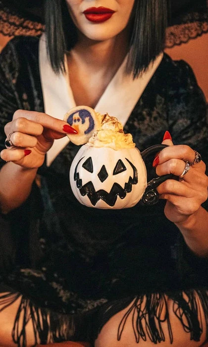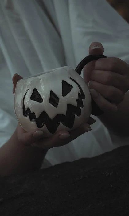 This pumpkin-shaped mug holds 12oz of coffee, tea, whiskey, blood (for all you vampires out there), or whatever your delicacy might be. Please note this will come in the standard mug box from the traditional Haunted Hallows Mug.