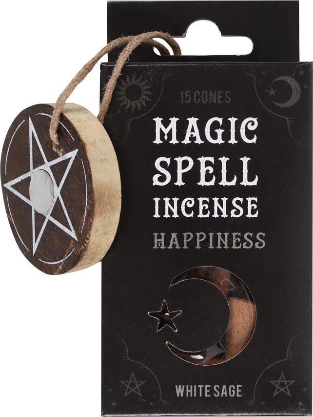 Β This box of magic spell incense includes 15 scented incense cones and a matching wooden pentagram holder that is perfect for accompanying spells of balance and happiness. Whether used for spell work or everyday enjoyment, this fragrance will attract all the best things life has to offer.