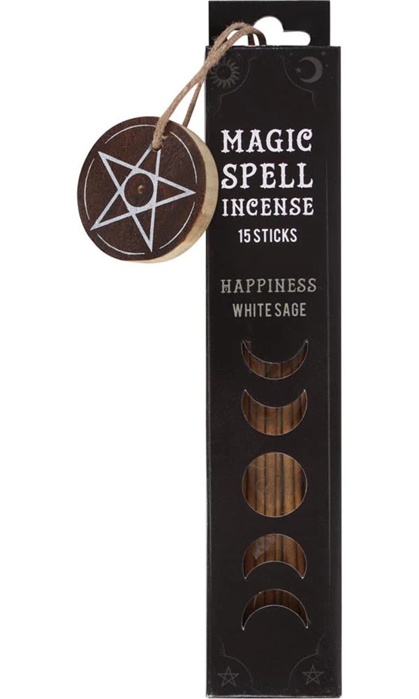 ο»ΏThis box of magic spell incense includes 15 white sage scented incense sticks and a matching wooden pentagram holder that is perfect for accompanying spells of balance and happiness. Whether used for spell workΒ or everyday enjoyment, this fragrance will attract all the best things life has to offer.