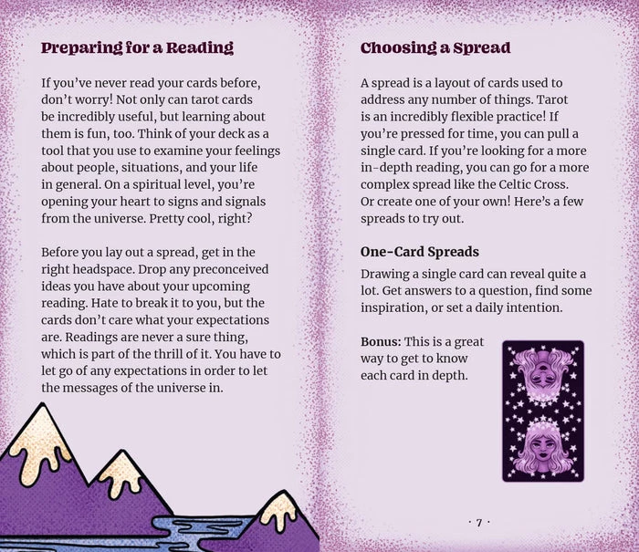 – 78-card tarot deck featuring fun, empowering pulp art illustrations