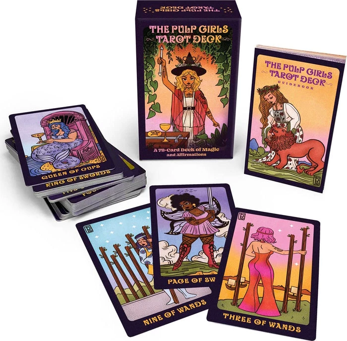 Pulp Girls Tarot DeckΒ brings the modern style and wit of the Pulp Girls’ inclusive, empowering pulp art illustrations to this 78-card tarot deck and guide.