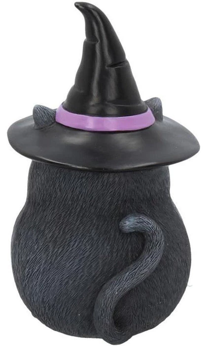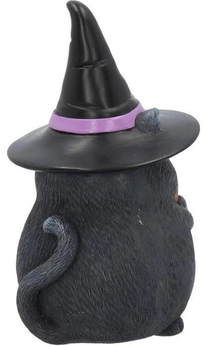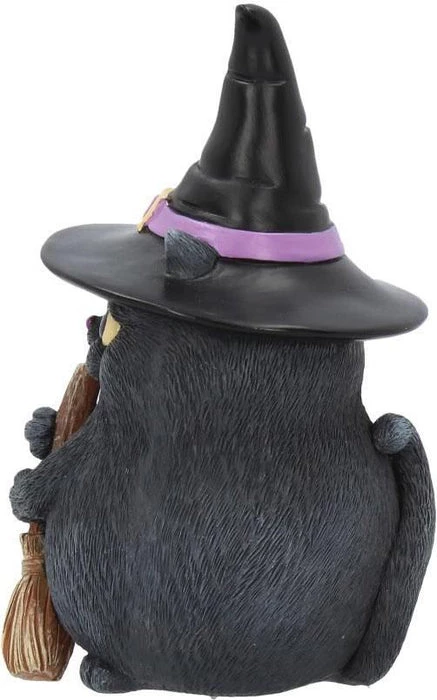 Sitting upright, eyes bright with excitement, thisΒ cute chubby black cat clutches a wooden broom in their front paws. On their head, their ears poke through the brim of a large black witchesβ hat. Cast in the finest resin before being lovingly hand-painted, this cute kitty is the purrfect ornament or sneaky garden statue!