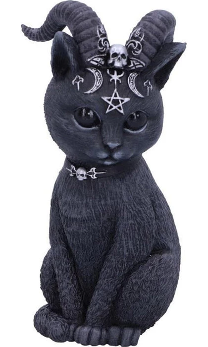 This horned cat is the union of good and evil. The black cat, sits and stares at you adoringly. As you look into its black eyes you notice the darkness that resides. Inside this cat appears to be the spirit of Baphomet, encapsulated by goat horns and satanic symbology. Cast in high-quality resin and carefully hand-painted this figurine is likely to be the cutest occultist you’ve ever seen.