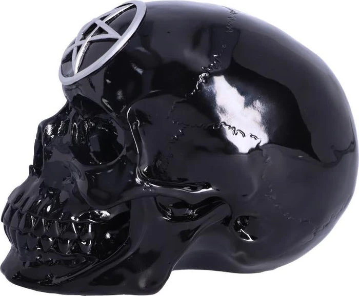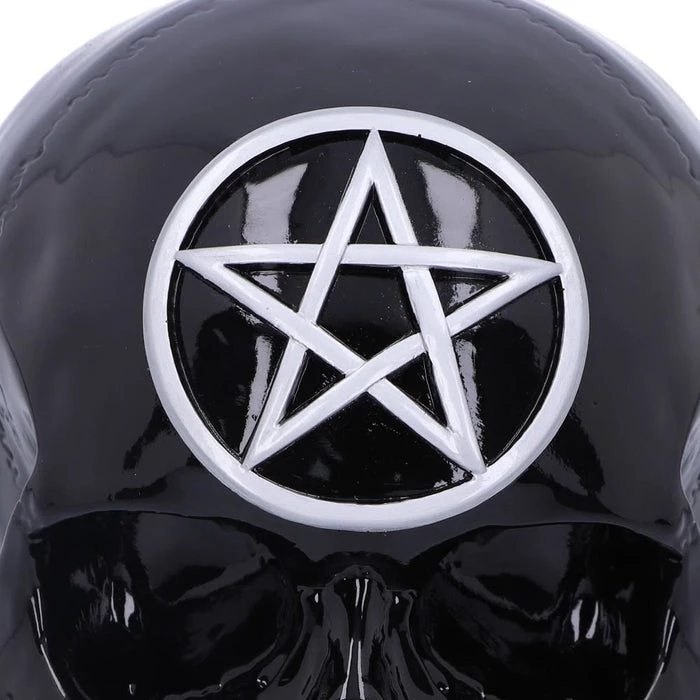 Painted in black glossy paint with a large silver pentagram on the top of the skull, this piece has been cast in the finest resin before being expertly hand-painted and would make the perfect addition to any alternative store or gothic collection.