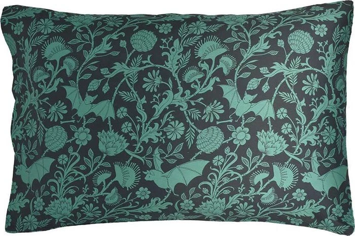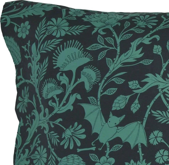 Let you spirits wander in the intoxicating beauty of our Elysian Fields design in a new hue: absinthe. Frisky little bats flutter among the graceful thistles and Venus flytraps of a print that’s reminiscent of a moonlit garden. Spruce up your home with floral linens that are far from the usual. Just like you.