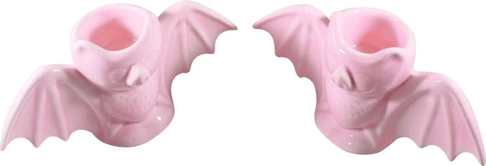 SPOOKY CUTE doesn’t even begin to describe just howwwww cute the new Pink Bat Candlestick Holders are!! These little cuties are what every pastel goth needs in their perfect pink castle. They come in a set of two and are made to fit a standard taper (2.2cm diameter) candle.
