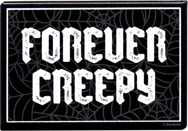 Stay Forever Creepy! Add some awesome to your fridge, file cabinet or locker with the spookyΒ Forever Creepy magnet.