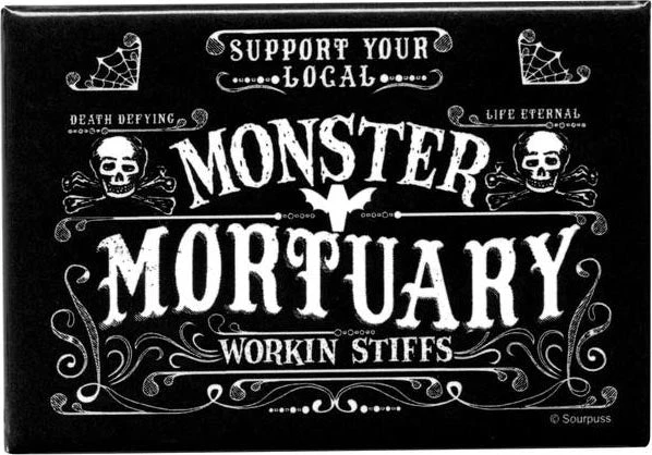 Always an honest day’s work down at the Monster Mortuary! Make your fridge, file cabinet or locker as creepy as you are with this Monster Mortuary rectangle magnet!